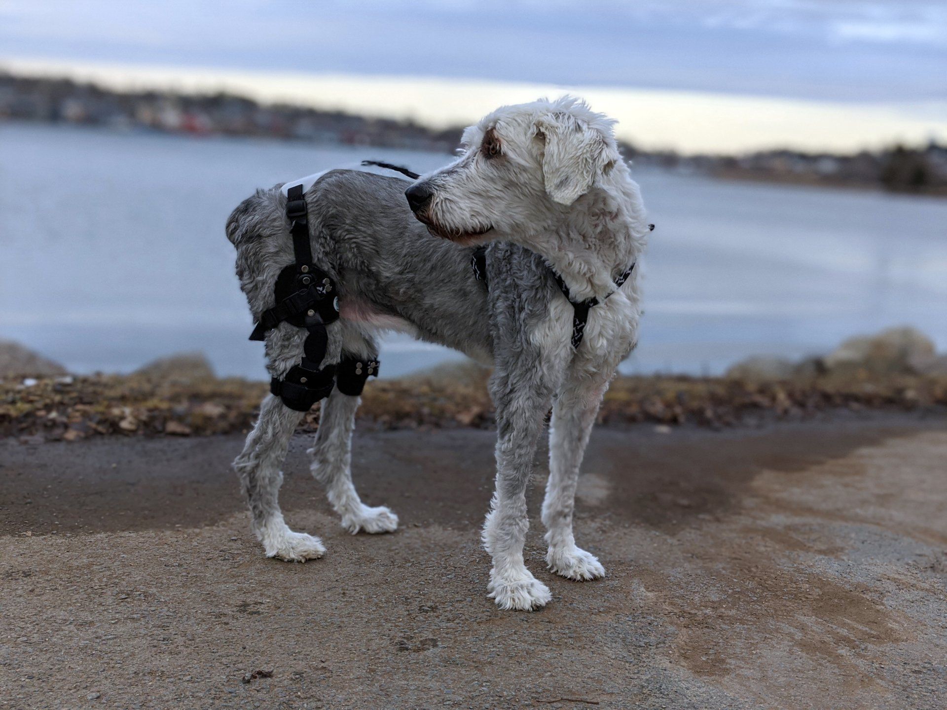 Langley had TPLO Surgery in 2017 he had a long recovery. Then in November 2019 his other leg started to show signs of deterioration. I decided that at his age of 10 years old I did not want to put him through another surgery. I went with both legs being braced because I didn't feel like he was stable on the surgery leg as well. I brought Langley in for a fitting and not long after he is wearing his new Stifle Orthosis. I feel at ease knowing that he is more protected from further injury. I have seen a huge improvement. I highly recommend using this service and devices. I am so glad I found Jeff and his Team at K-9 Orthotics. Lisa - Lunenburg, NS