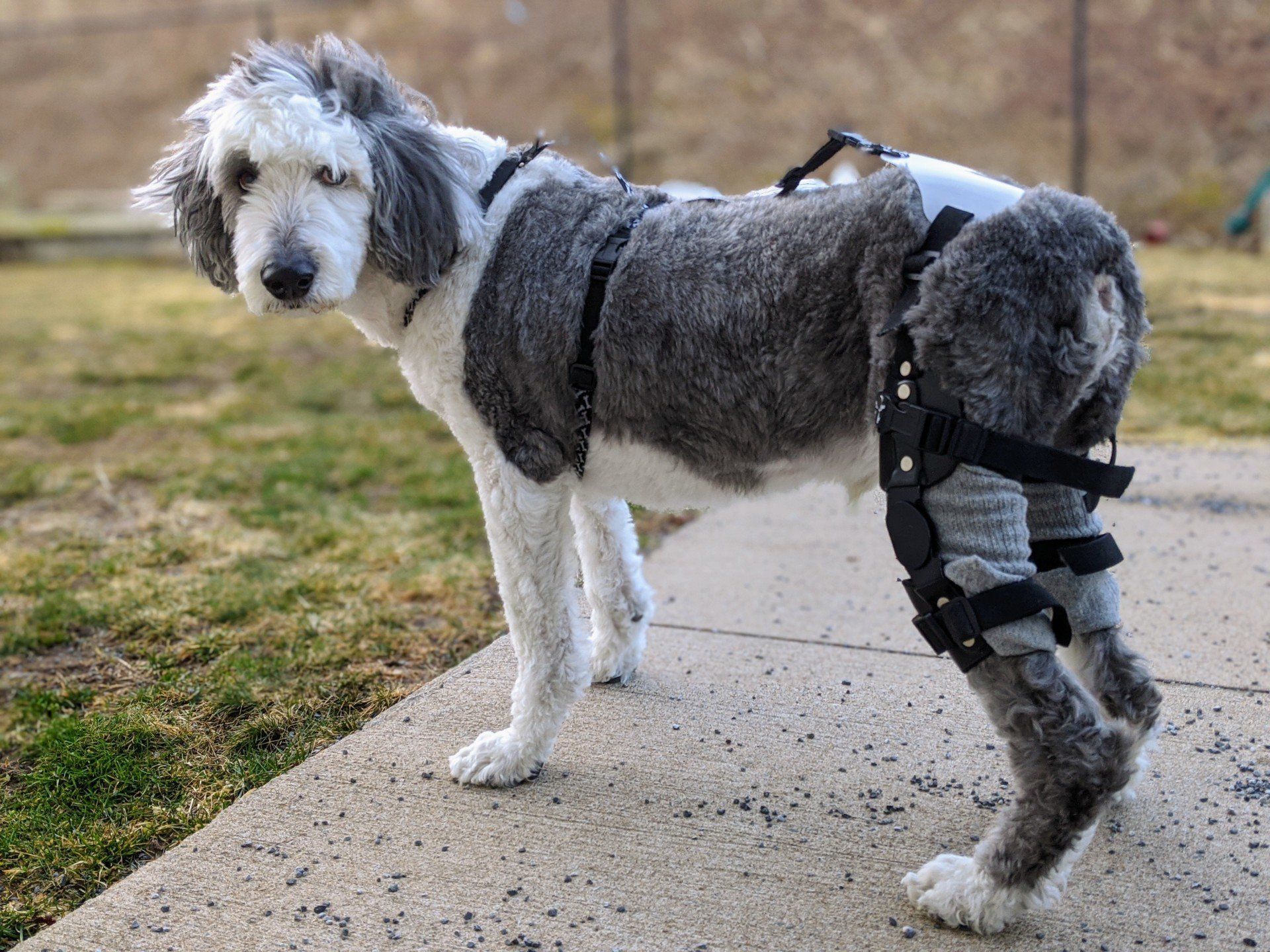 Langley had TPLO Surgery in 2017 he had a long recovery. Then in November 2019 his other leg started to show signs of deterioration. I decided that at his age of 10 years old I did not want to put him through another surgery. I went with both legs being braced because I didn't feel like he was stable on the surgery leg as well.